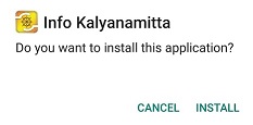 klik [Open], Aplikasi Info Kalyanamitta telah aktif dan proses installasi selesai